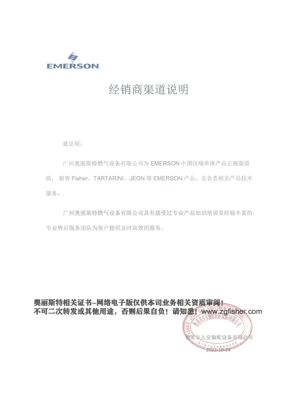 2023-2024年度渠道商說明EMERSON艾默生/FISHER費(fèi)希爾